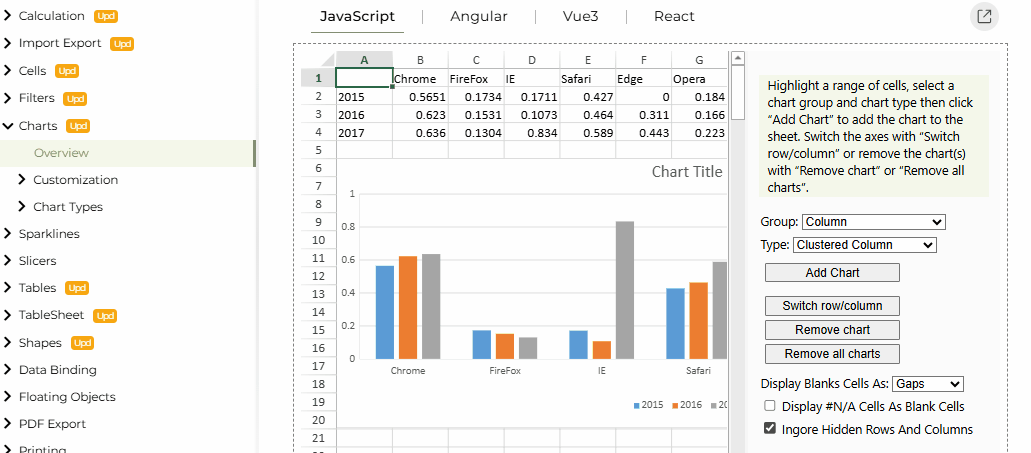 So how SpreadJS is implementing this , is there any command for this in spreadJs , using which i can use or import this functionality. Or they simply transpose the data and then update the chart accordingly.