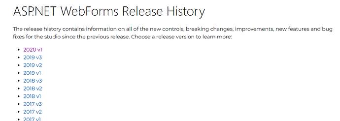 Please note that ASP.NET WebForms is now considered legacy and no new development is taking place. For long-term support and newer features, we recommend migrating to ASP.NET MVC: