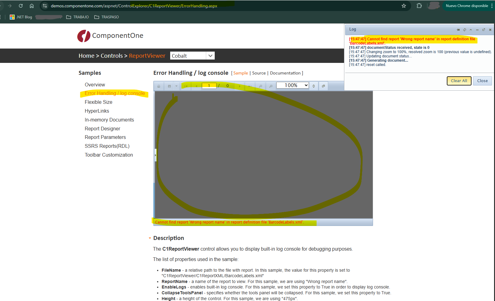 Any errors in samples about C1ReportViewer?