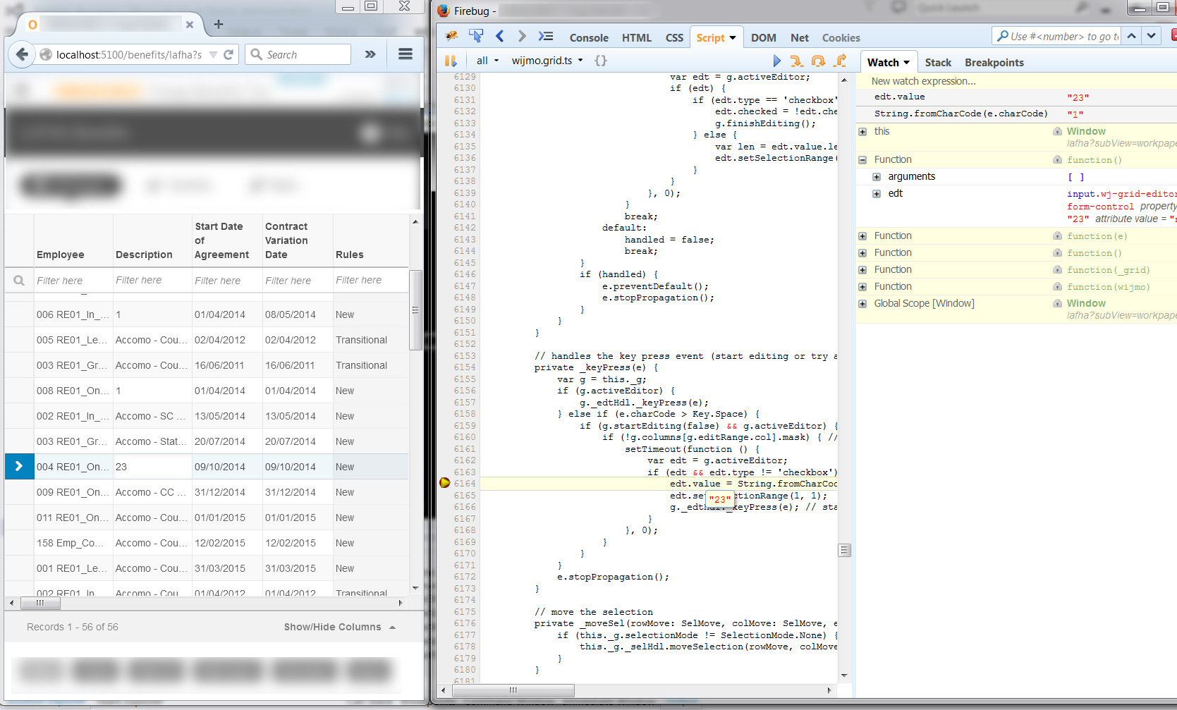 This is embedded in a timeout and when line 6164 executes, edt.value == either “12” or “123” and String.fromCharCode(e.charCode) == “1”