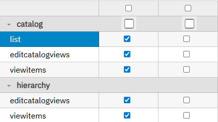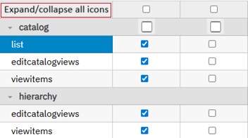 Show a checkbox near the group header text (e.g., “catalog”, “hierarchy”).