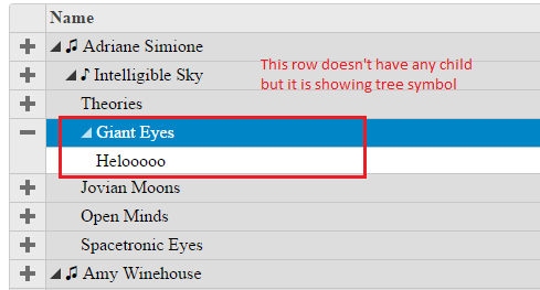 I am trying to use row details option for a table which has children. But it is not working as expected. when i am clicking ‘+’ icon it is showing the details, at the same time if i am clicking the triangle button my details are getting collapsed. Is there any way to avoid this.
