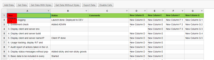 Code to add new columns to my sheet.