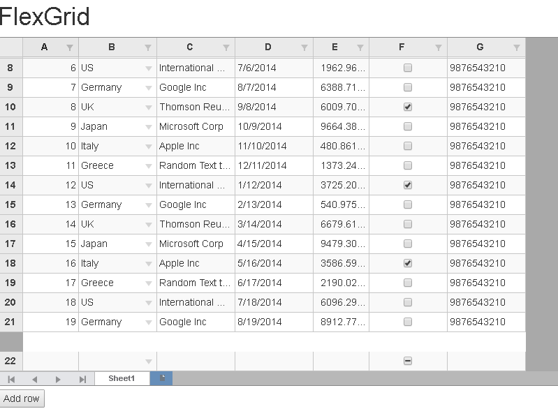 An example showing flexsheet filter along with inline add row would be really appreciated.