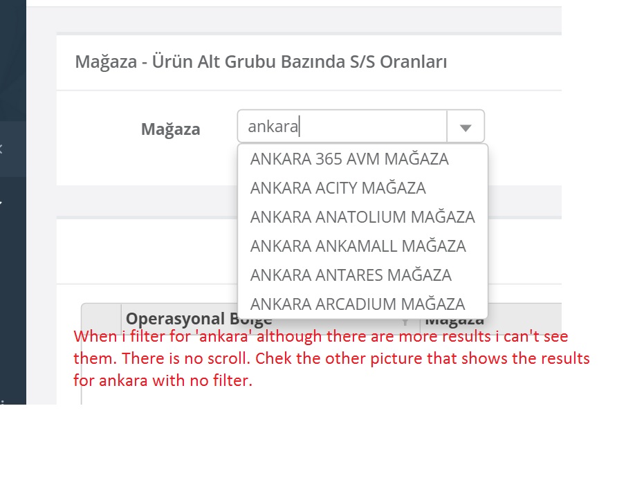 Also Autocomplete has problem with the scroll bar. When there is no filer scroll bar is visible. But if there is a filer scroll bar is not visible and so rest of the filtered results are not shown.