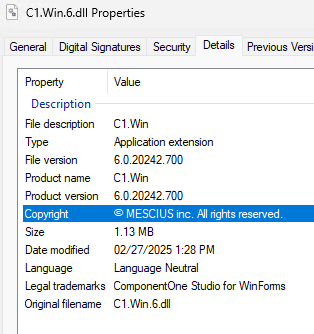I have installed C1.Win v8.0.20242.700 via NuGet packet manager, but the dll generated in bin/debug folder says version 6.0.20242.700 (which doesn’t even exist).