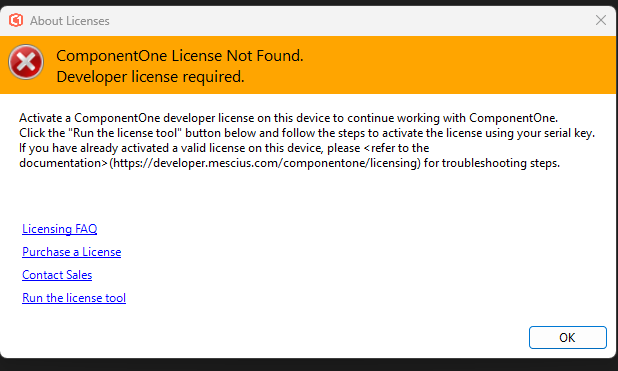 FYI, with v755 release we have introduced a new licensing model called SA3Client. For more information, please refer to https://developer.mescius.com/forums/c1-studio/c1-2025-v2-1-maintenance-release-with-licensing-changes