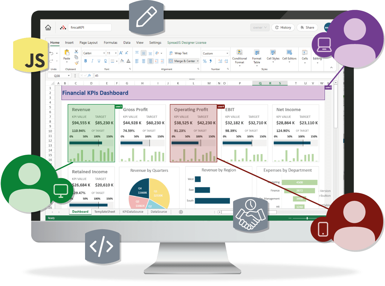 The SpreadJS Collaboration Server brings true multi-user, real-time editing to your JavaScript spreadsheets. Built on a powerful Collaboration Framework and Operational Transformation (OT) engine, it keeps data synchronized and conflict-free as users make concurrent updates, from cell edits to row insertions. Each collaborator’s cursor, selection, and color-coded presence are displayed live, improving team awareness and workflow transparency. Developers can configure Edit or View-only modes for secure, role-based access and even sync multiple spreadsheet instances locally for single-user multi-view setups. Whether enabling shared financial modeling, team reporting, or collaborative data input, this add-on delivers a seamless Excel-like co-authoring experience directly in your web app.