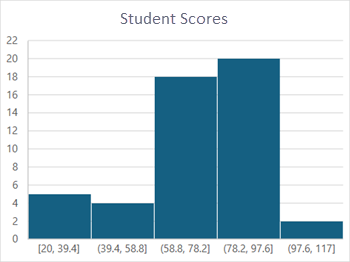 Histogram charts are visual representation of data distribution over a continuous interval or a certain period. These charts consist of vertical bars that indicate the frequency in each interval or bin, created by dividing the raw data values into a series of consecutive and non-overlapping intervals. A histogram looks more similar to the bar charts, but there are no gaps between bars.