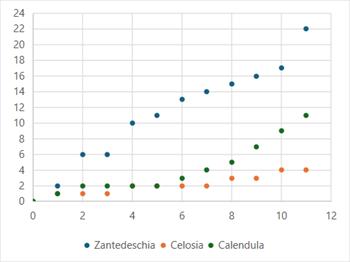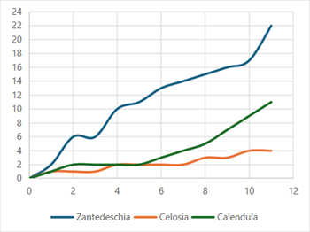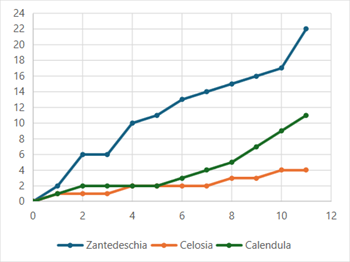 { "Period", "Zantedeschia", "Celosia", "Calendula" },